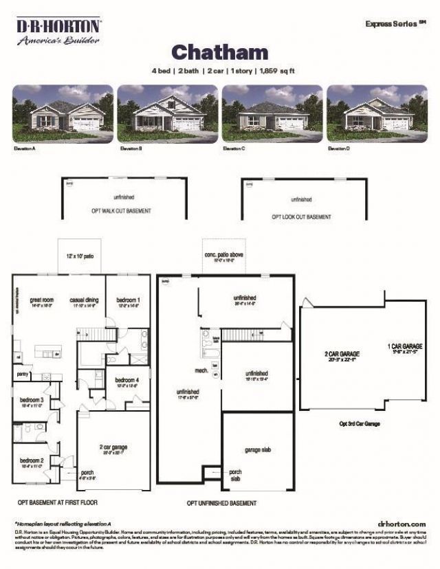 The Chatham by D.R. Horton 1,859 sq. ft. single-level ranch style home offers four bedrooms, two full baths and so much more! Designed with modern families in mind, this home features an open-concept kitchen, dining, and living area that creates a welcoming space for gatherings and everyday living. The kitchen includes a large island, stainless steel appliances, quartz counter tops, and a walk-in pantry. The private primary suite is located at the rear of the home and boasts a spacious walk-in closet and double-sink vanity. Three additional bedrooms and a full bathroom are thoughtfully placed at the front of the home, providing privacy and flexibility for guests, kids, or a home office. Additional features include full basement with egress windows, 9 ft ceilings, 36' upgraded cabinets, beautiful granite countertops and a two-car garage. Relax and enjoy all the amenities Lakefield Place has to offer, including pool, dog park, pickle ball and so much more!