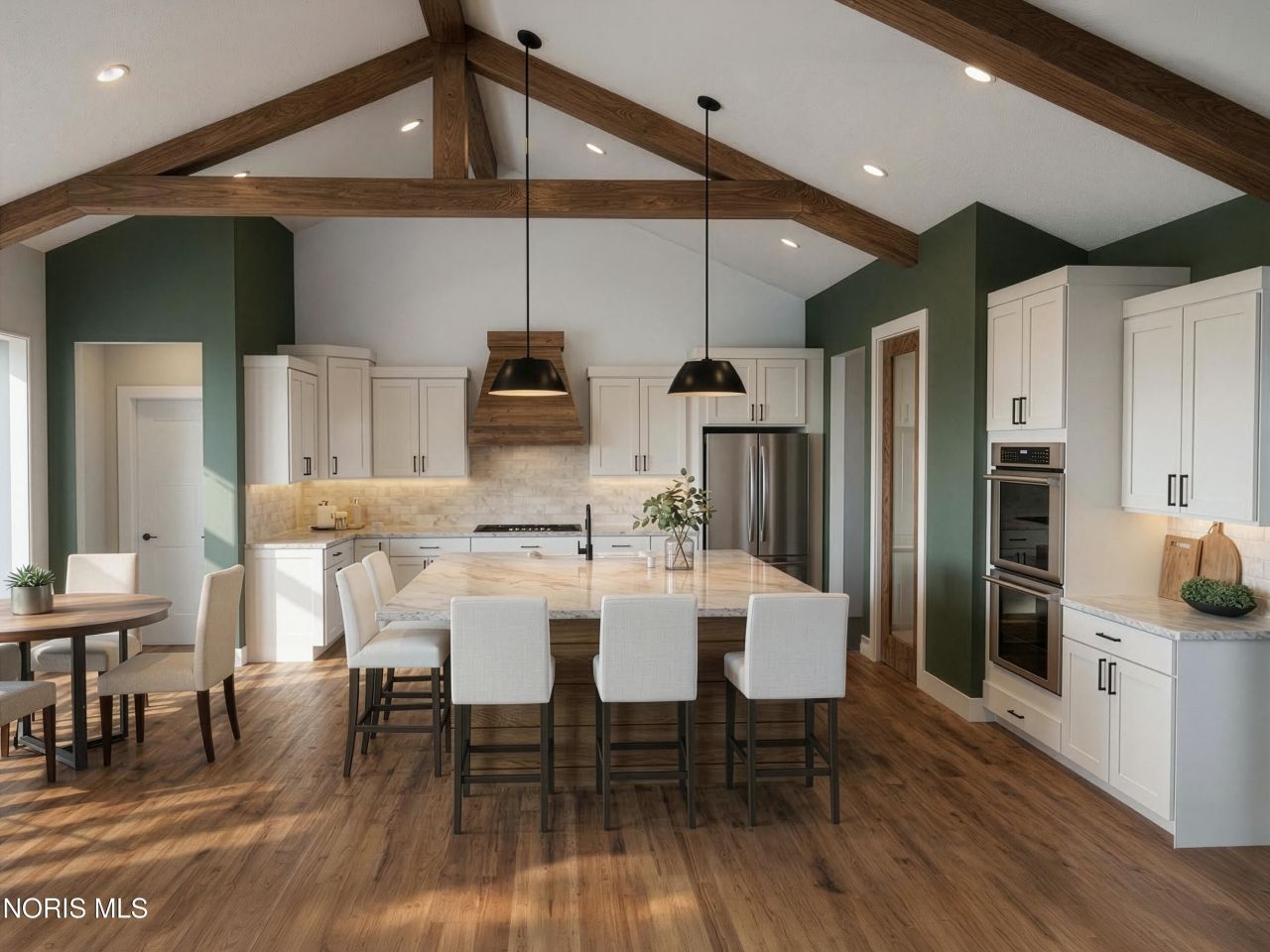 This home was designed, interior-designed, and built by award-winning and high-end custom builder, Homes by Josh Doyle. This new construction custom home offers the highest level of structural quality and energy efficiency. Features include ½ closed cell spray foam exterior walls with fiberglass batt insulation & R-50 ceiling insulation (perfect for rising energy costs!), 4000 PSI concrete w/ fiber mesh foundation walls, premium-grade studs and OSB, and top-tier basement drainage and waterproofing systems. This quality is un-matched in the industry for spec homes. The layout is a perfected 'master class' custom home design specifically for this lot. NOT COOKIE CUTTER. Learn more about the quality on the How We Build page of their website. Contact directly to do a 3D walk-through of the home to visualize interior finishes and layout in a virtual meeting or in-person at HQ in Whitehouse, Ohio. *****Location / Lot***** This residence is situated ON A PREMIER WATER LOT in the highly sought-after Evergreen Abbey Subdivision in Monclova, OH. As a Homes by Josh Doyle exclusive community, every residence showcases architectural distinction with steep 12/12 pitch roofs and completely unique, custom-designed floor plans and exteriors. This premier location offers seamless interstate access and the significant benefit of a Maumee address within Monclova Township, which means NO LOCAL INCOME TAXES! *****Layout***** This spectacular 'split' ranch-style home features an incredible 2,572 square foot single-floor layout. The open-concept design flows seamlessly from the chef's kitchen to an eat-in dining with a stunning great room and a bright sunroom, both featuring cathedral ceilings. A private den is elegantly accessed by glass double doors right off the entryway. The primary suite is a true retreat with a massive walk-in closet that leads into the laundry room, a custom tile shower, a double sink vanity, and a luxurious freestanding soaking tub. The home also features 2 additional bedrooms with their own separate and private hallway, connected bath has double sink vanities & private tub/shower/toilet room. The everyday entrance from the oversized 3-car garage leads into a dedicated mudroom with custom built-in lockers, a closet and entrance to the separate laundry room. *****Finishes***** EXTERIOR: This home offers incredible curb appeal with striking black windows, an elegant black front door, and sleek long-panel black garage doors! Beautifully painted siding with crisp board-and-batten details is perfectly highlighted by gorgeous stone accents along the base. Custom stained cedar touches, including inviting front porch columns and beautiful decorative wood accents, give the outside a truly bespoke, high-end feel-making this residence look VERY custom! INTERIOR: Inside, breathtaking ceiling trusses in the great room and kitchen showcase the high-end custom craftsmanship of this interior. A spectacular kitchen awaits, featuring gleaming quartz countert