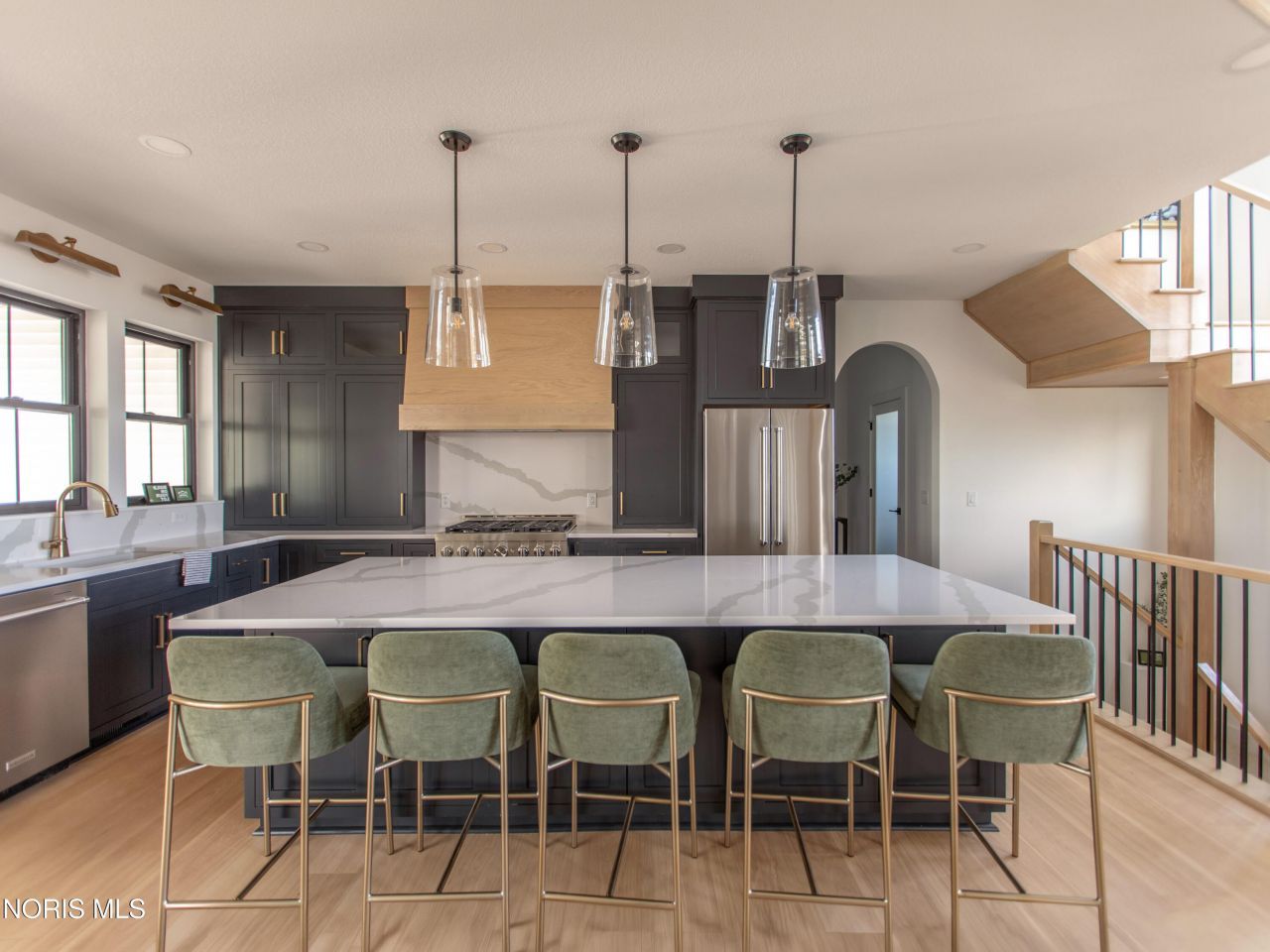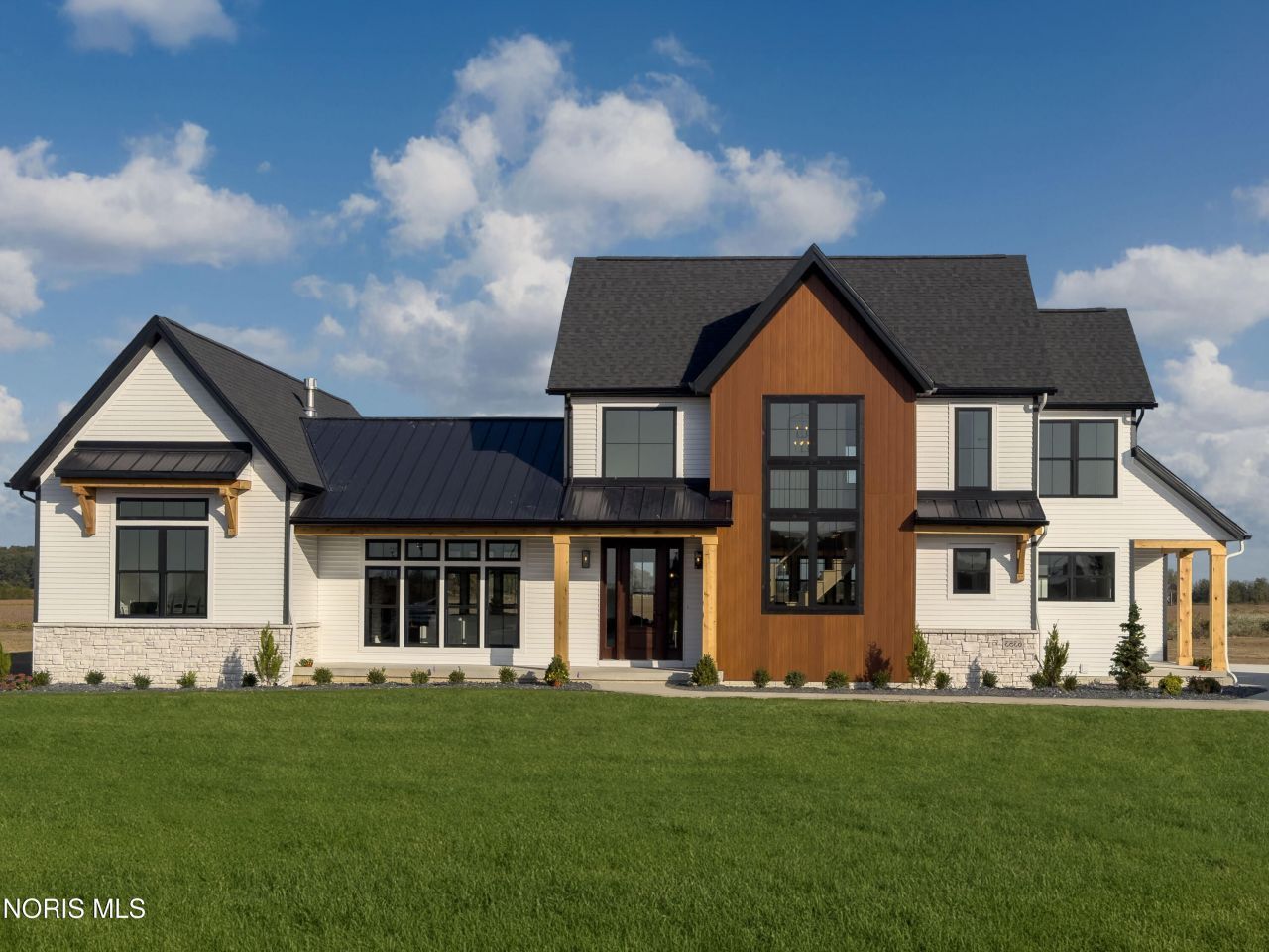 This home was designed, interior-designed, and built by award-winning and high-end custom builder, Homes by Josh Doyle. This new construction custom home offers the highest level of structural quality and energy efficiency. Features include ½ closed cell spray foam exterior walls with fiberglass batt insulation & R-50 ceiling insulation (perfect for rising energy costs!), 4000 PSI concrete w/ fiber mesh foundation walls, premium-grade studs and OSB, and top-tier basement drainage and waterproofing systems. This quality is un-matched in the industry for spec homes. The layout is a perfected 'master class' custom home design specifically for this lot. NOT COOKIE CUTTER. Learn more about the quality on the How We Build page of their website. Contact directly to do a 3D walk-through of the home to visualize interior finishes and layout in a virtual meeting or in-person at HQ in Whitehouse, Ohio. *****Location / Lot***** This residence is situated in the highly sought-after Evergreen Abbey subdivision in Maumee, OH. As a Homes by Josh Doyle exclusive community, every residence showcases architectural distinction with steep 12/12 pitch roofs and completely unique, custom-designed floor plans and exteriors. This home is designed off of HbJD's model home in the Telluride subdivision. Schedule an appointment to see it today on HbJD's website. All the pictures are from that model home. The layout is identical, but the Finishes have been adjusted a little. This home is on the premier water lot in EA. Twice the backyard size as most other water lots. *****Layout***** This spectacular home offers a beautifully designed living space, plus a lower floor perfect for entertaining! The open-concept main floor flows effortlessly from the chef's kitchen with walk-in-pantry into a bright sunroom and a breathtaking great room crowned by a soaring cathedral ceiling with stained beams. A custom painted door with clear glass open into a private, elegant den. The first-floor primary suite serves as a luxurious personal retreat, complete with a massive walk-in closet, a gorgeous custom tile shower, a dual-sink vanity, and a relaxing free standing tub. Upstairs, you'll discover three additional bedrooms, two full bathrooms, a private versatile loft, and a spacious bonus room. Completing this master class layout is a dedicated mudroom with custom built-in lockers and a convenient laundry room located right off the oversized garage that is set to the back of the home. *****Finishes***** EXTERIOR: The pictures say it all. This home is not like other 'local homes' Its exterior looks was designed to capture a modern look, clean and unique. Just the right amount of stain, black windows, trim, cedar accents, posts and porches. It's truly one of Doyle's best looking exteriors. INTERIOR: The interior features were meticulously selected to showcase a very cohesive / consistent look through-out the contemporary farmhouse style. Custom 2-toned stacked cabinets from countertop t