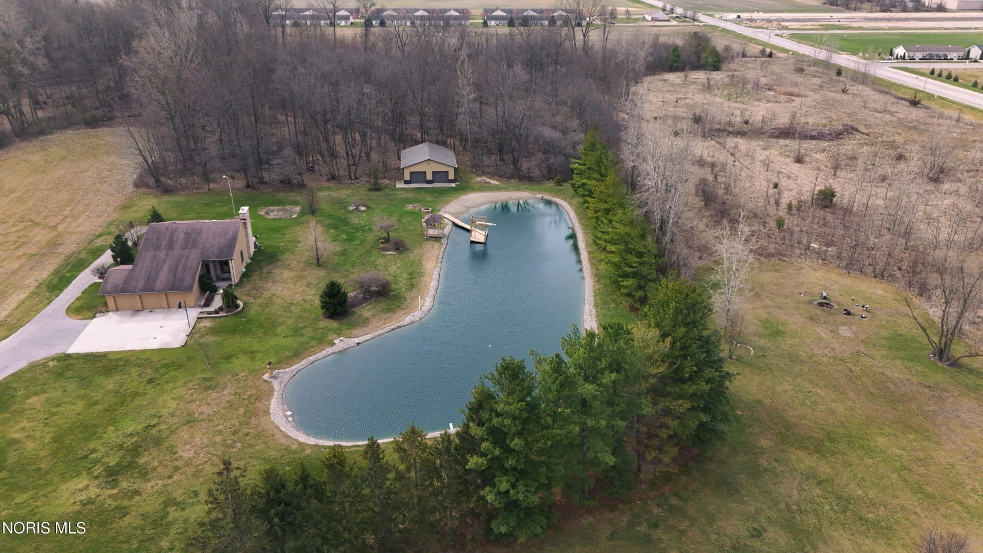 Beautiful home situated on 8 acres, with approximately 4.7 acres of wooded privacy. This 3-bedroom, 2.5-bath property features an open layout highlighted by cathedral ceilings and a cozy wood-burning fireplace. The living area includes a breakfast counter or wet bar, perfect for entertaining. Step outside to enjoy a stunning pond with dock and a charming gazebo, creating a peaceful outdoor retreat. A large 32??40 pole barn provides ample space for hobbies, storage, or equipment. Set well back from the road, the home feels quietly nestled among the woods. Inside, the bedrooms are exceptionally spacious, each offering large closets and abundant storage. ****professional photos coming soon***